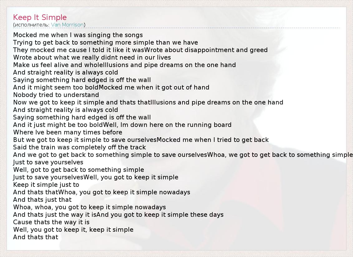 А как ты думаешь, о чем песня "Keep It Simple" ?