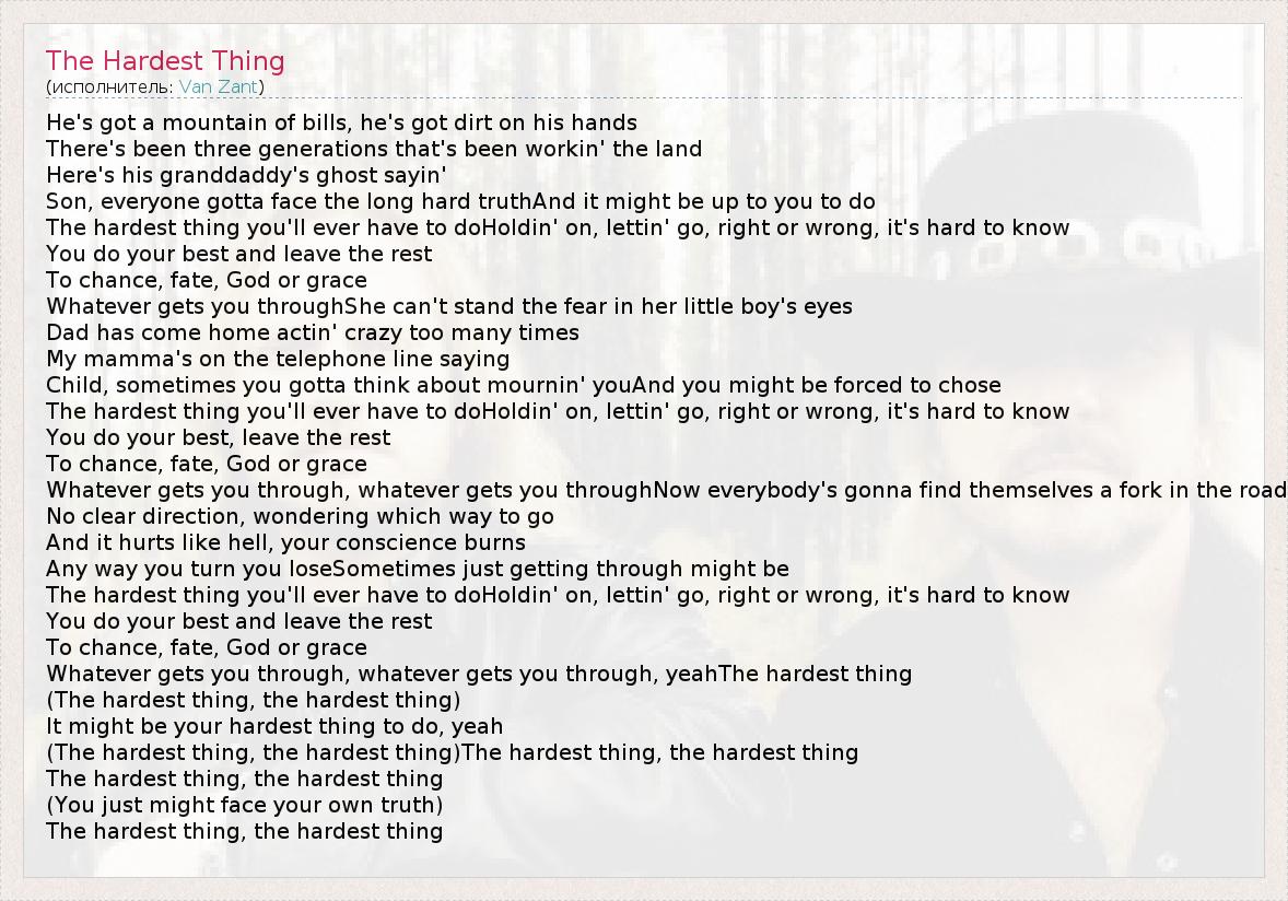 А как ты думаешь, о чем песня "The Hardest Thing" ?