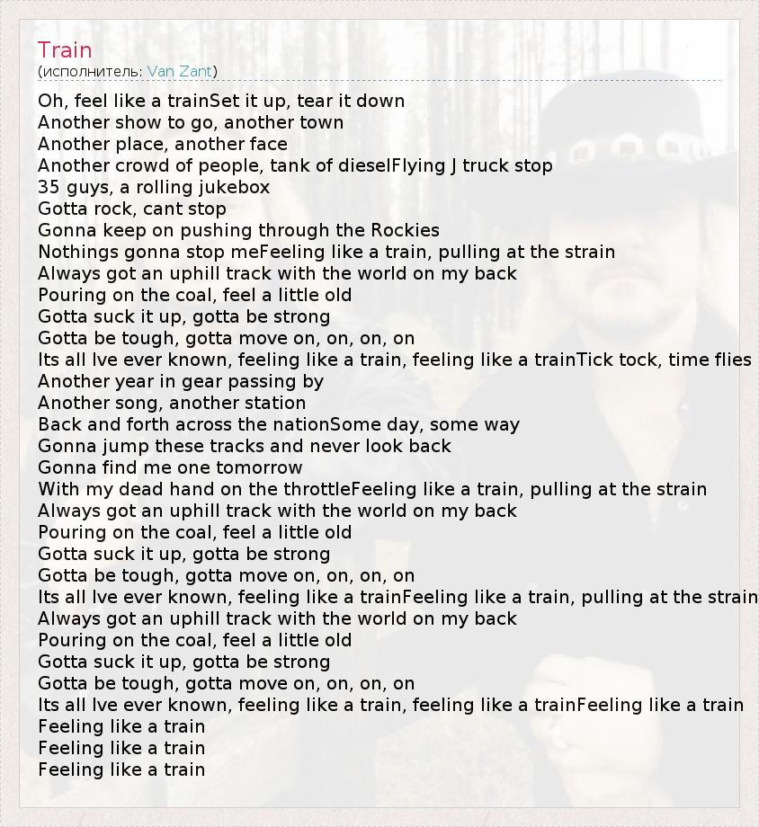 Its all Ive ever known, feeling like a train, feeling like a trainFeeling like a train