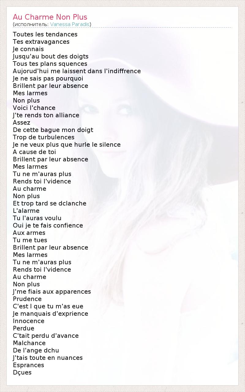 А как ты думаешь, о чем песня "Au Charme Non Plus" ?