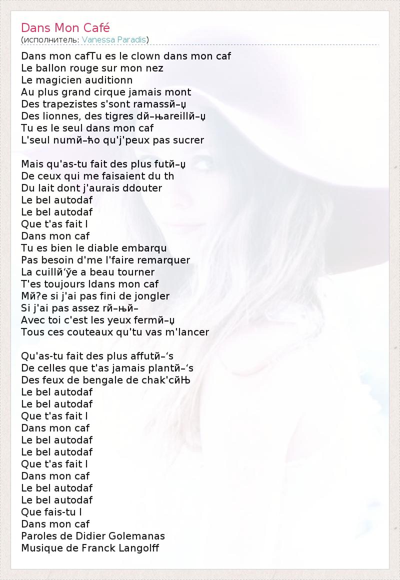 А как ты думаешь, о чем песня "Dans Mon Café" ?