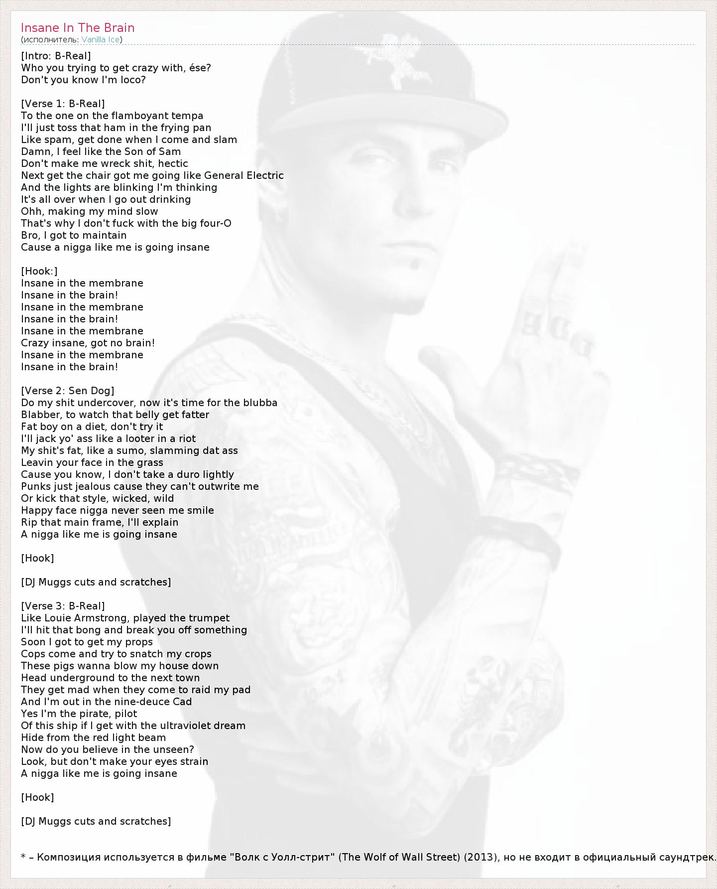 А как ты думаешь, о чем песня "Insane In The Brain" ?