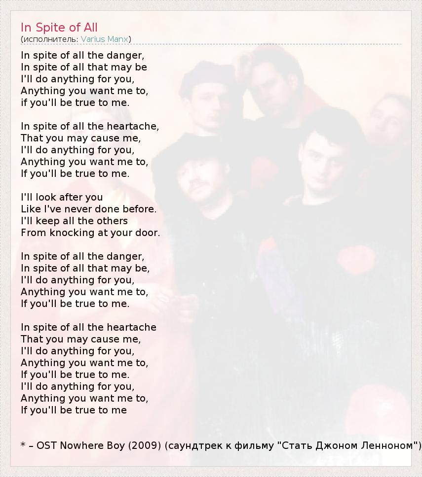 А как ты думаешь, о чем песня "In Spite of All" ?