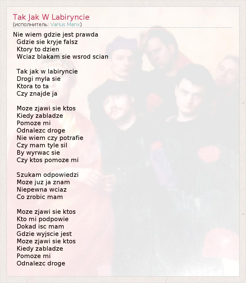 А как ты думаешь, о чем песня "Tak Jak W Labiryncie" ?