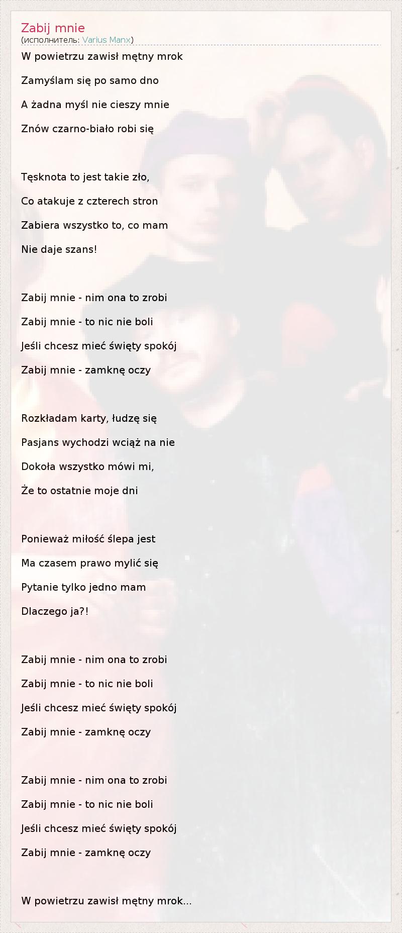 А как ты думаешь, о чем песня "Zabij mnie" ?
