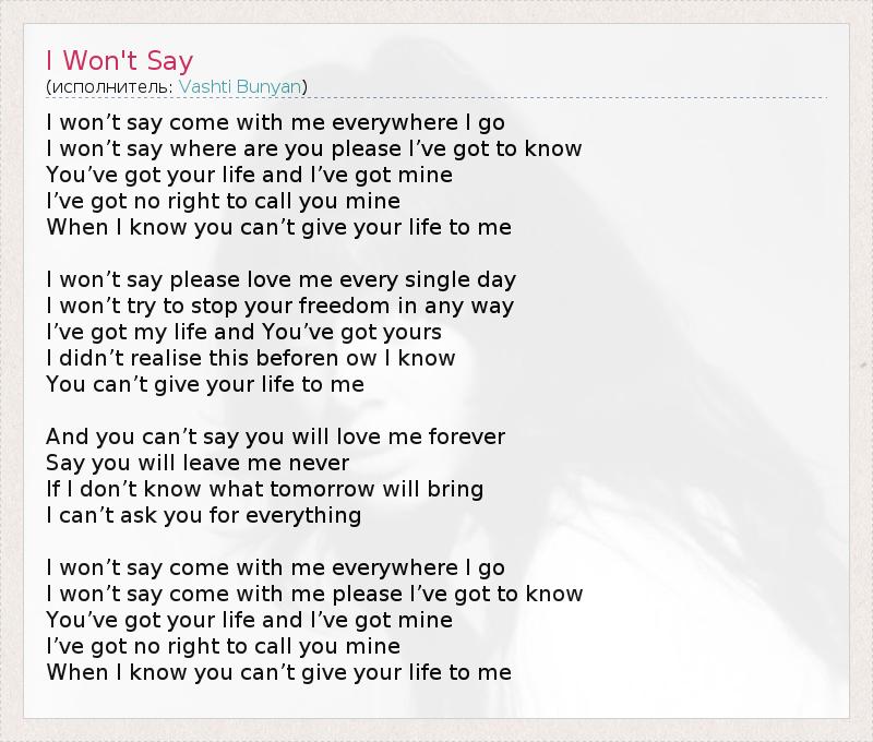 А как ты думаешь, о чем песня "I Won't Say" ?