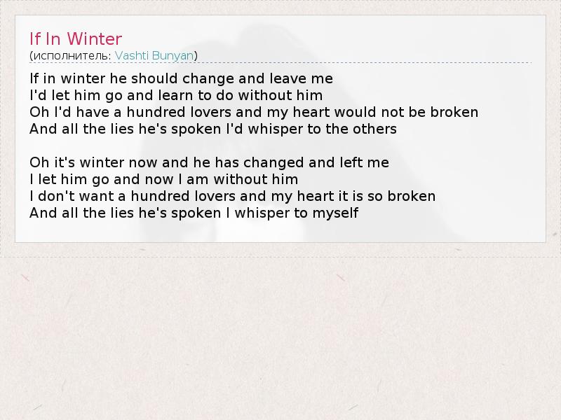 А как ты думаешь, о чем песня "If In Winter" ?