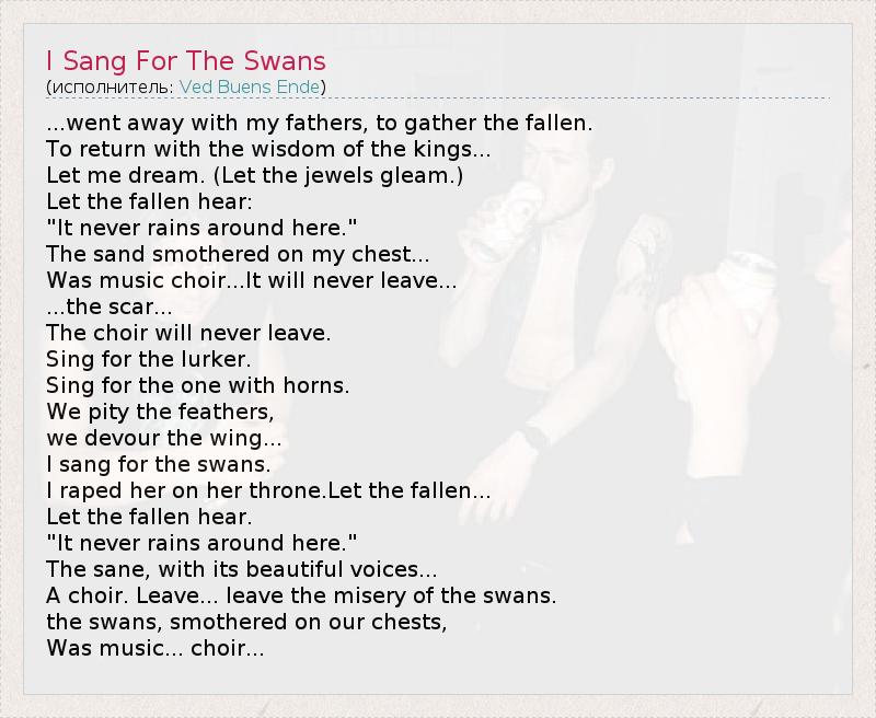 А как ты думаешь, о чем песня "I Sang For The Swans" ?