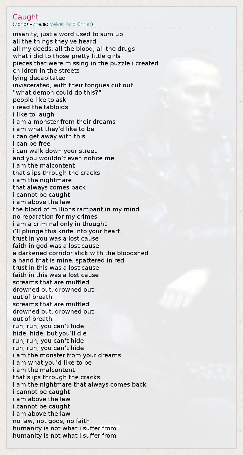 Это интересно:Velvet Acid Christ (сокращённо VAC) — музыкальная группа из США, играющая электро-индастриал. Основана в 1990 году в Денвере, штат Колорадо. Лидер группы — Брайан Эриксон (Bryan Erickson). Совместив разные стили и направления в музыке (EBM, industrial, trip-hop, gothic,... продолжение