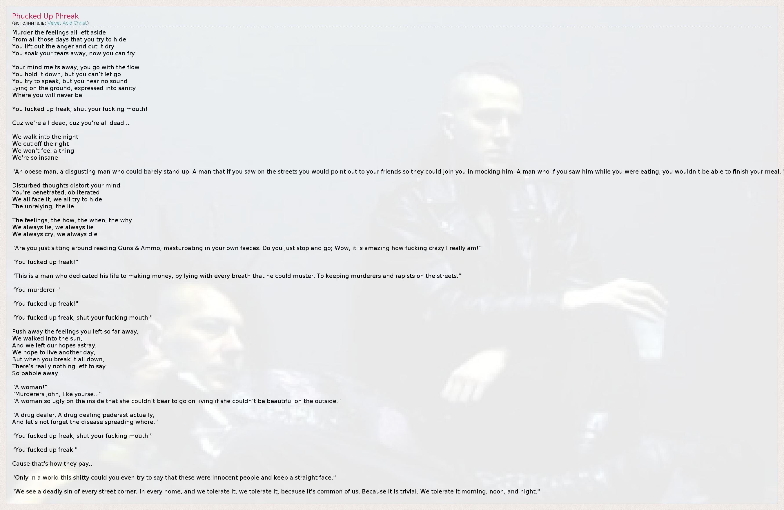 А как ты думаешь, о чем песня "Phucked Up Phreak" ?
