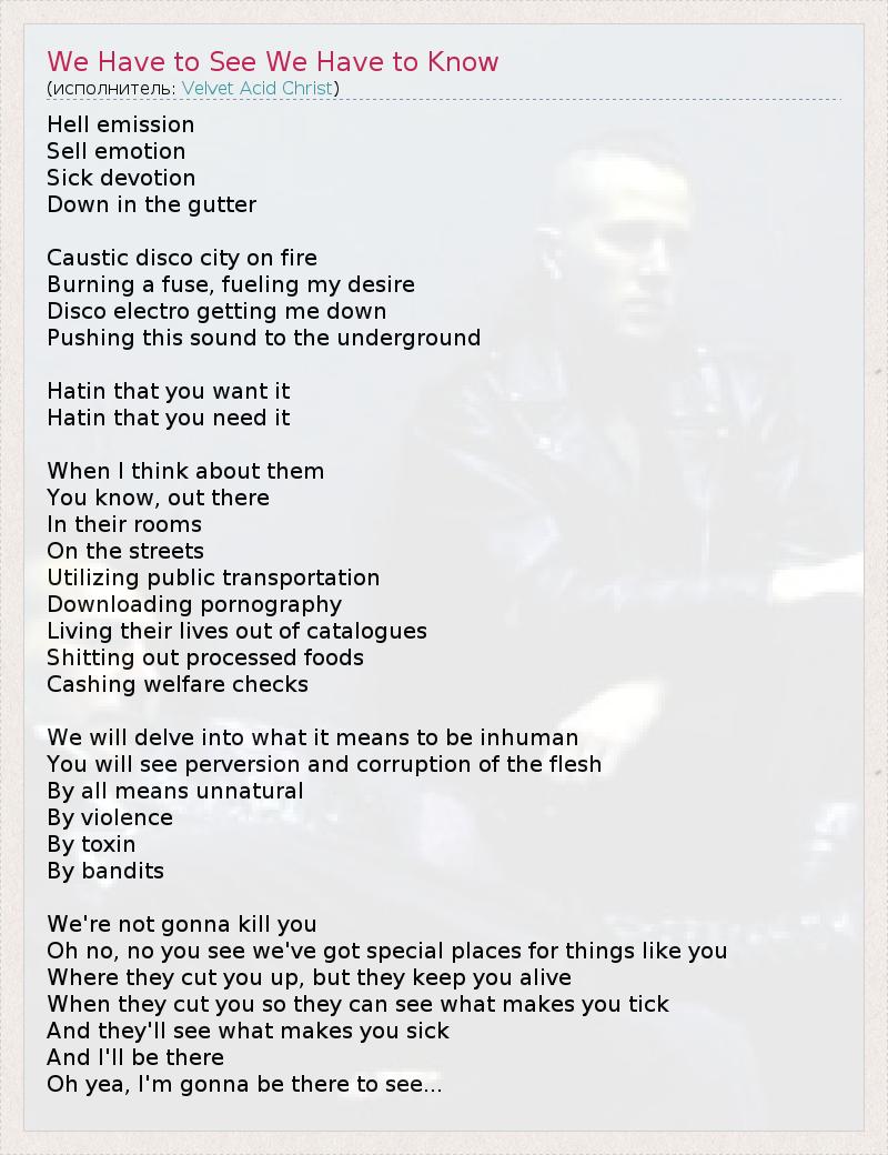 ГлавнаяИсполнителиVelvet Acid ChristWe Have to See We Have to Know