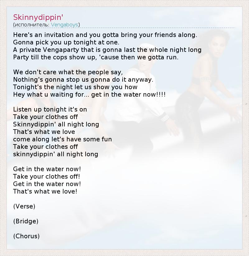 А как ты думаешь, о чем песня "Skinnydippin'" ?