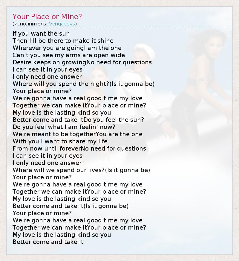 А как ты думаешь, о чем песня "Your Place or Mine?" ?