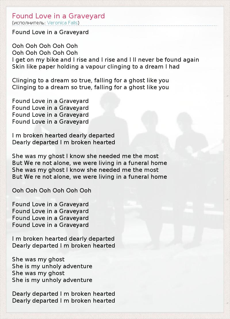 А как ты думаешь, о чем песня "Found Love in a Graveyard" ?