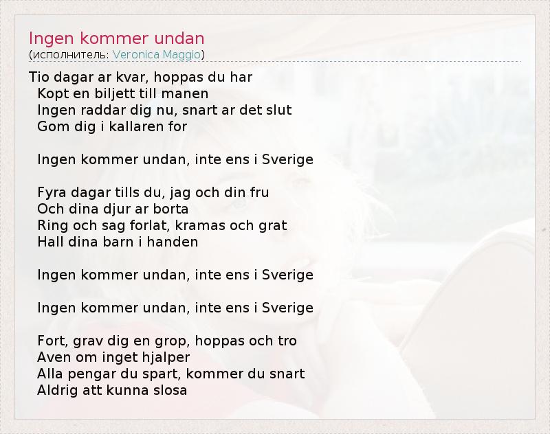 А как ты думаешь, о чем песня "Ingen kommer undan" ?