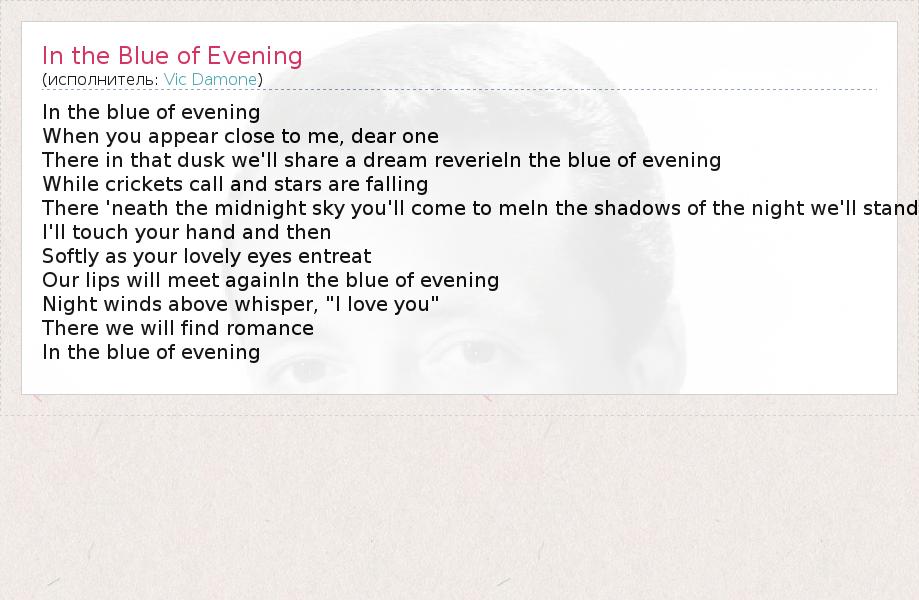 А как ты думаешь, о чем песня "In the Blue of Evening" ?
