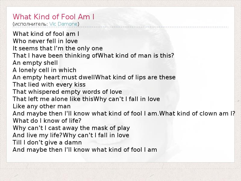 А как ты думаешь, о чем песня "What Kind of Fool Am I" ?