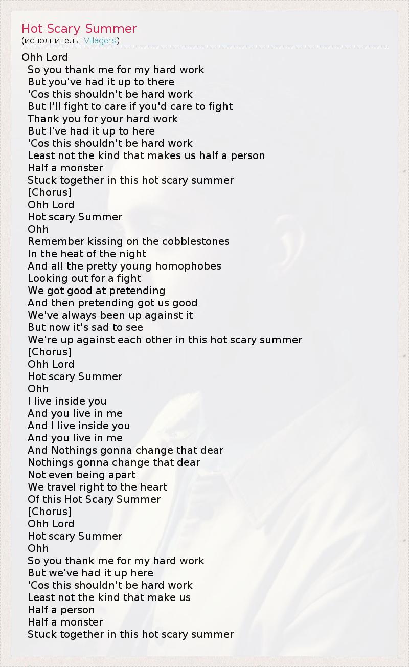 А как ты думаешь, о чем песня "Hot Scary Summer" ?