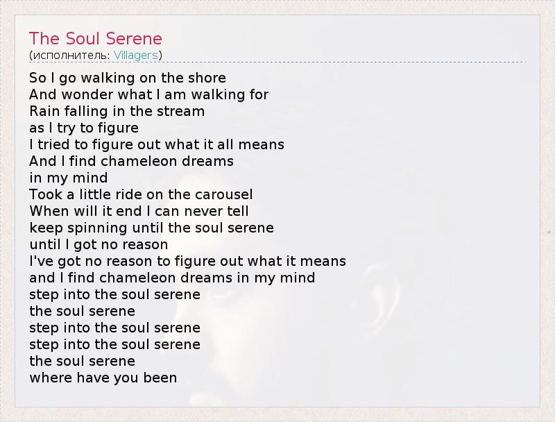 А как ты думаешь, о чем песня "The Soul Serene" ?