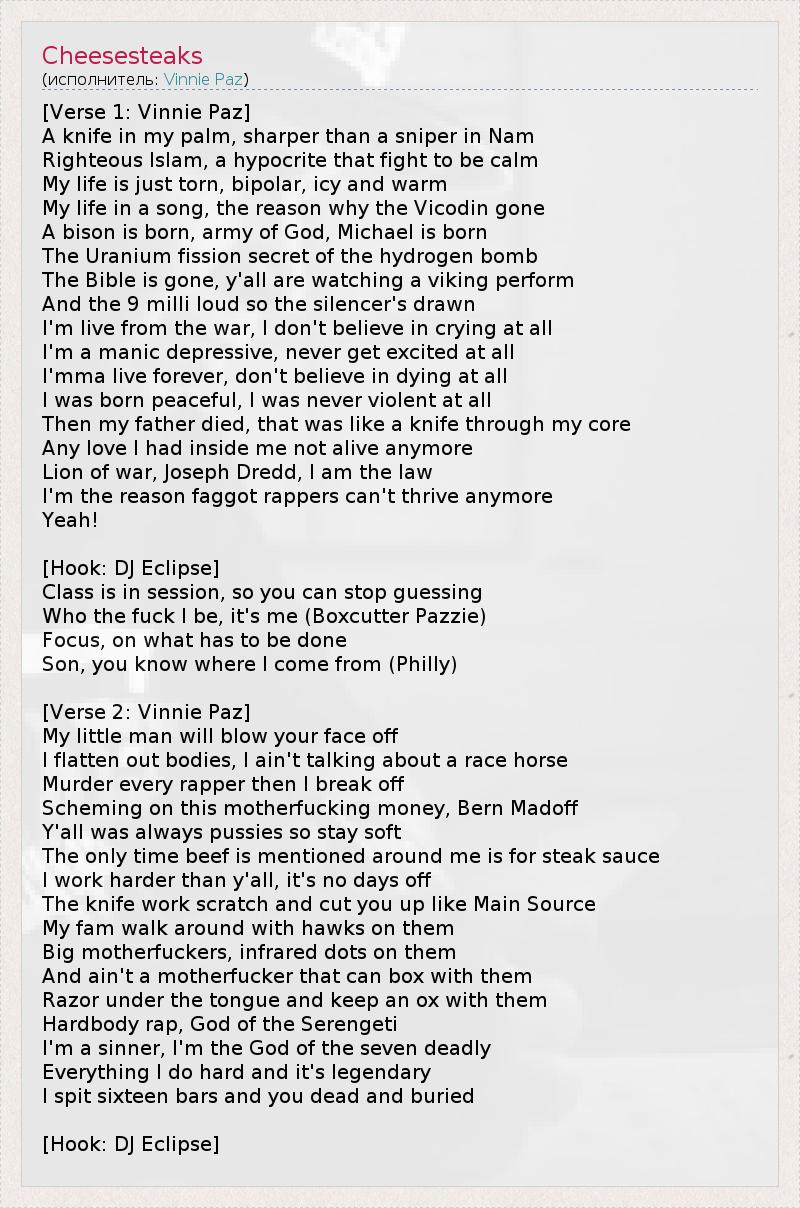 А как ты думаешь, о чем песня "Cheesesteaks" ?