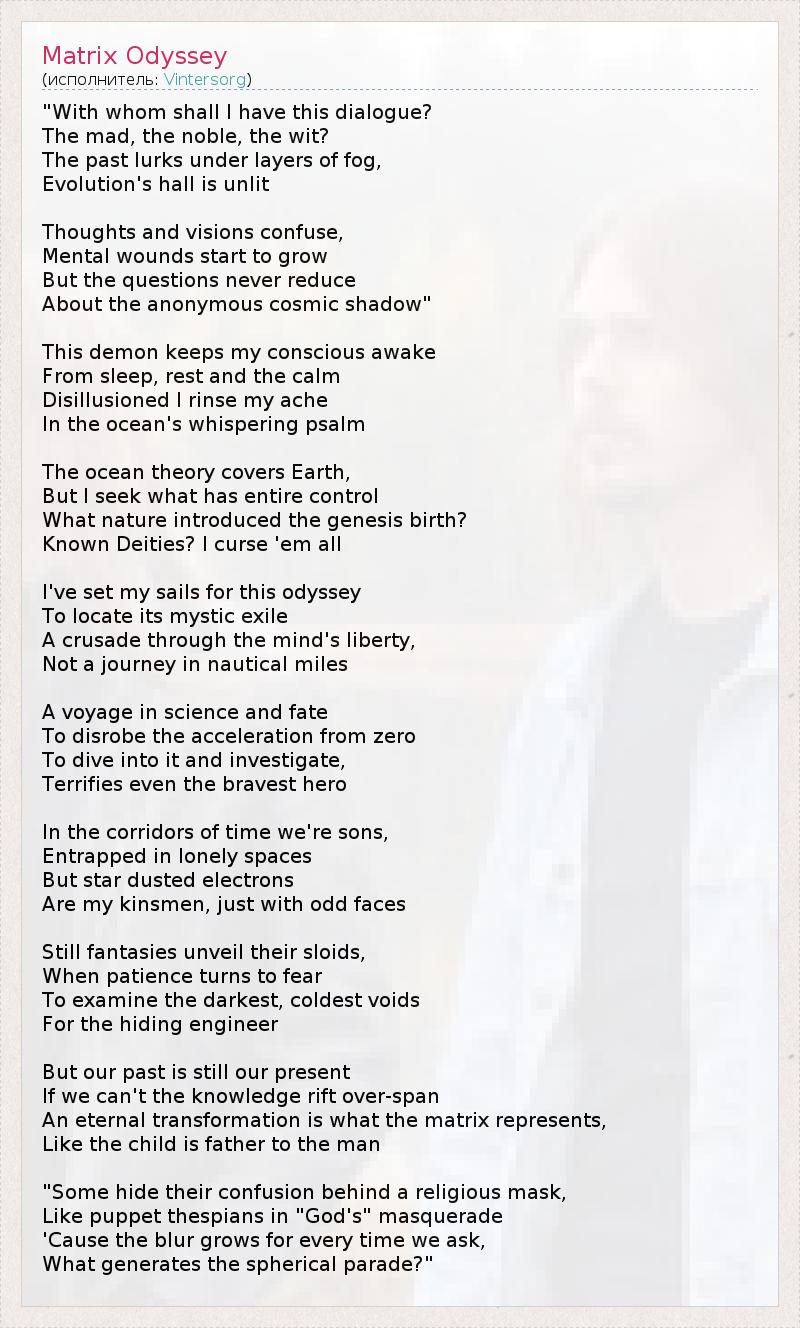 А как ты думаешь, о чем песня "Matrix Odyssey" ?