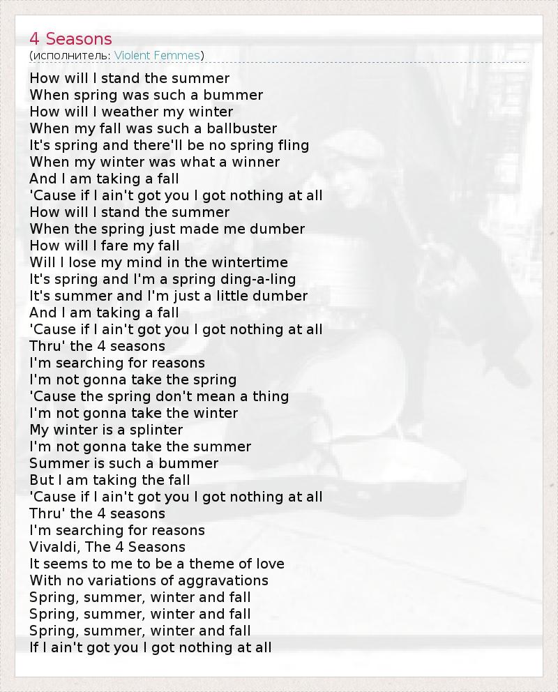 А как ты думаешь, о чем песня "4 Seasons" ?