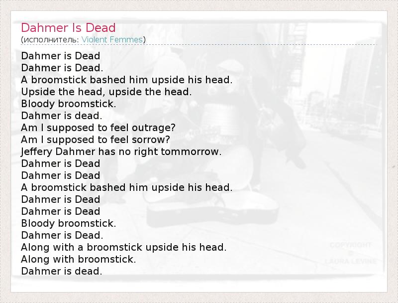 А как ты думаешь, о чем песня "Dahmer Is Dead" ?