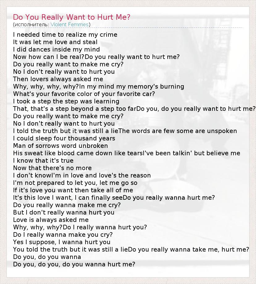 А как ты думаешь, о чем песня "Do You Really Want to Hurt Me?" ?