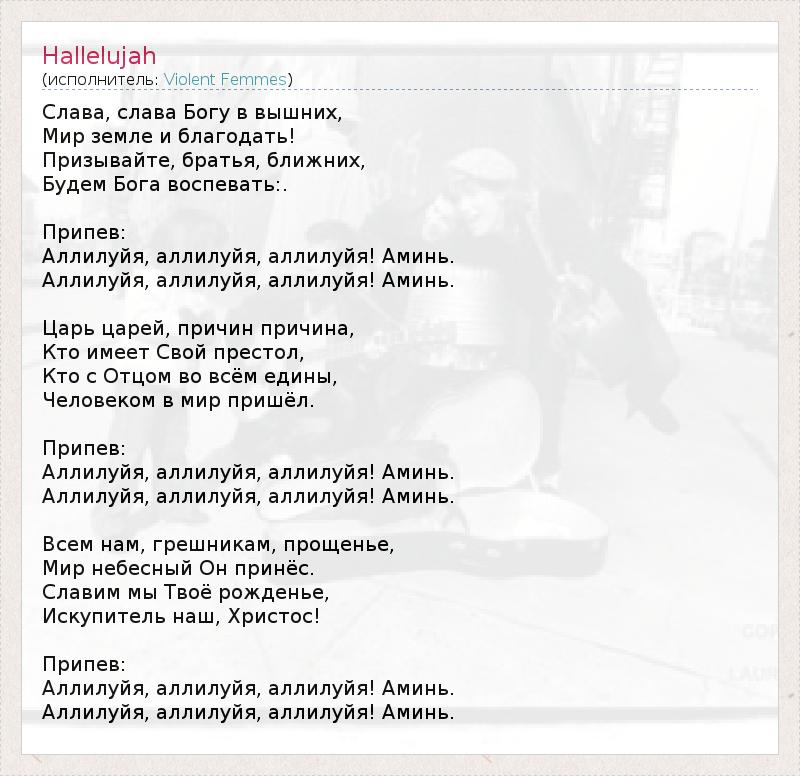 А как ты думаешь, о чем песня "Hallelujah" ?