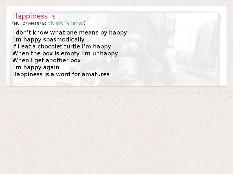 А как ты думаешь, о чем песня "Happiness Is" ?