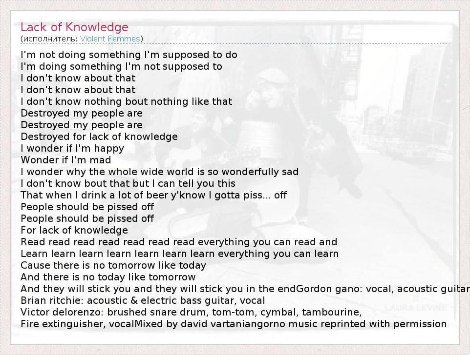 А как ты думаешь, о чем песня "Lack of Knowledge" ?