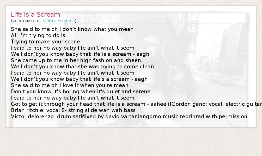 А как ты думаешь, о чем песня "Life Is a Scream" ?