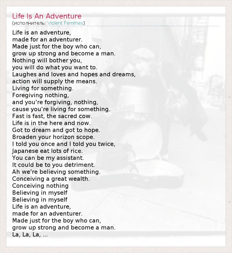 А как ты думаешь, о чем песня "Life Is An Adventure" ?
