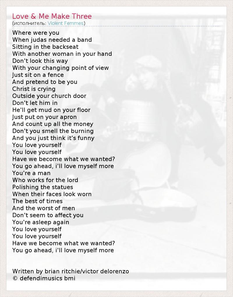 А как ты думаешь, о чем песня "Love & Me Make Three" ?
