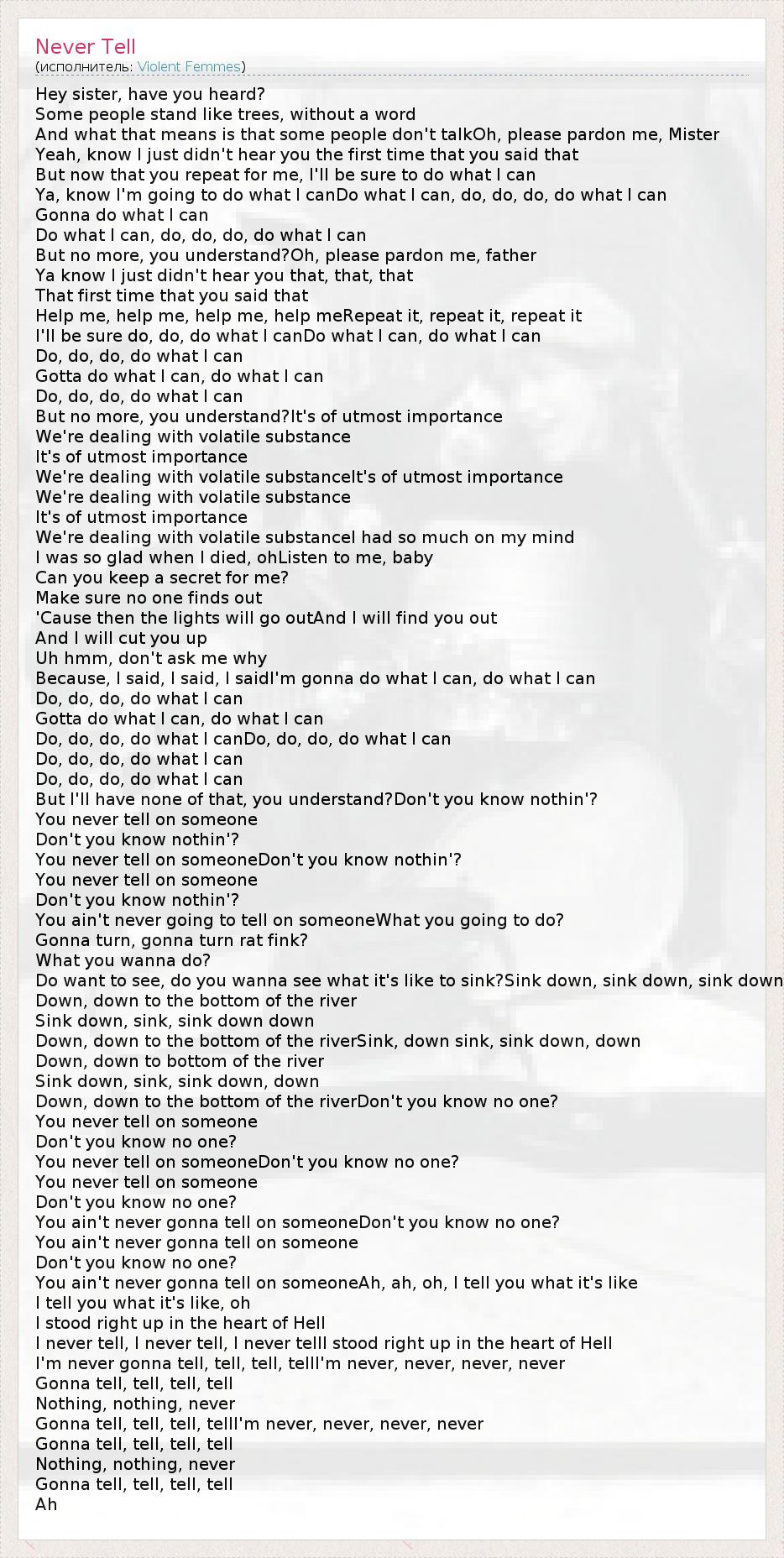 А как ты думаешь, о чем песня "Never Tell" ?