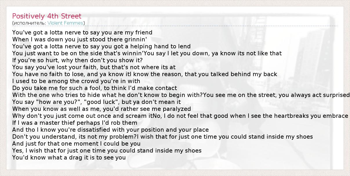 А как ты думаешь, о чем песня "Positively 4th Street" ?