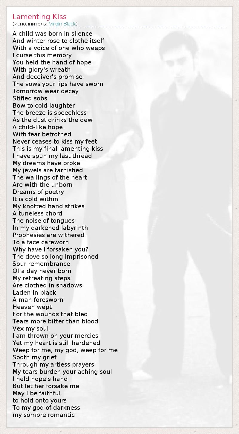 А как ты думаешь, о чем песня "Lamenting Kiss" ?