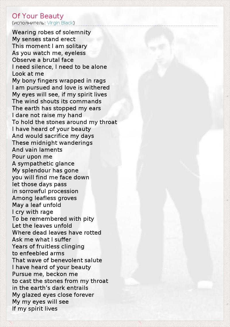 А как ты думаешь, о чем песня "Of Your Beauty" ?