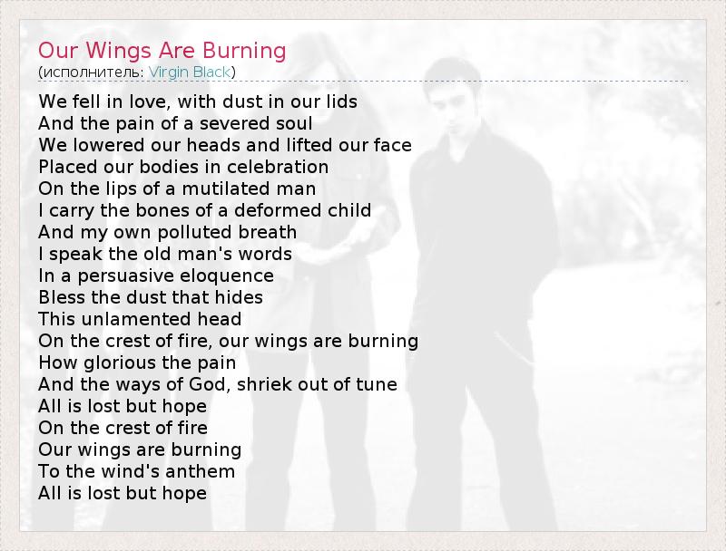 А как ты думаешь, о чем песня "Our Wings Are Burning" ?
