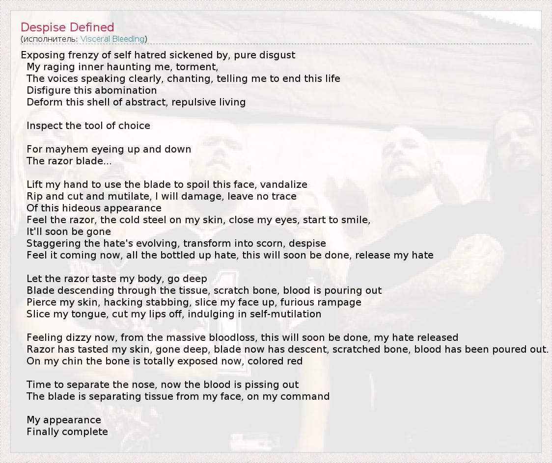 А как ты думаешь, о чем песня "Despise Defined" ?