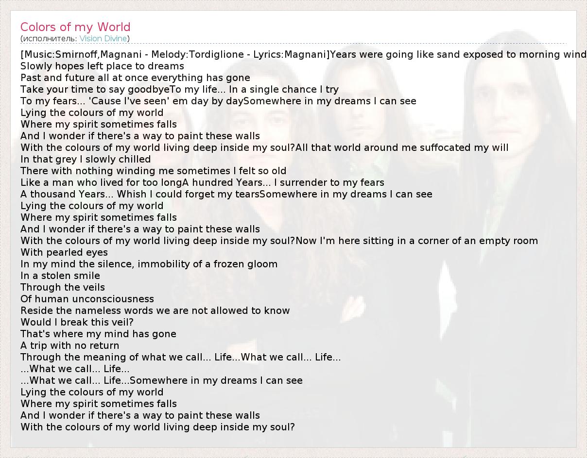 А как ты думаешь, о чем песня "Colors of my World" ?