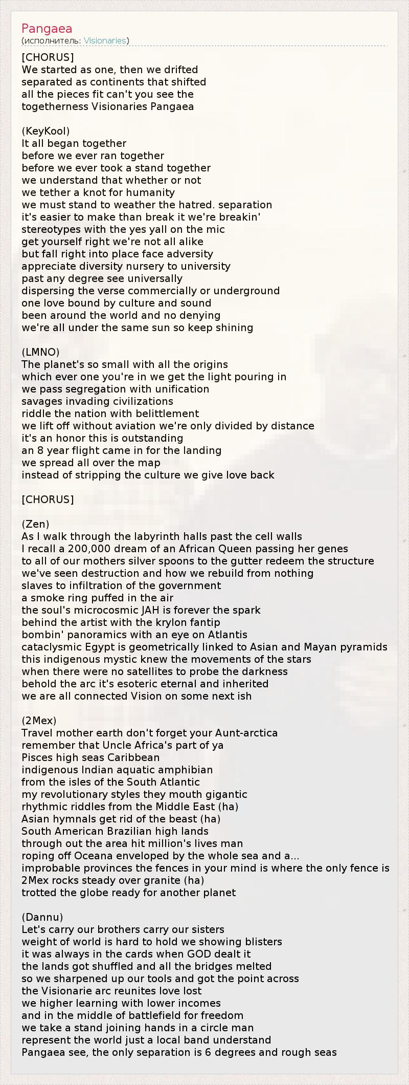 А как ты думаешь, о чем песня "Pangaea" ?