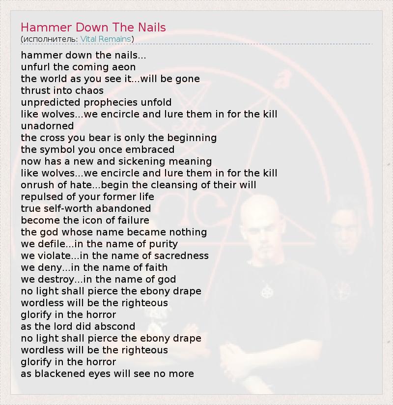 А как ты думаешь, о чем песня "Hammer Down The Nails" ?