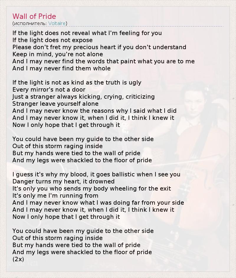 А как ты думаешь, о чем песня "Wall of Pride" ?