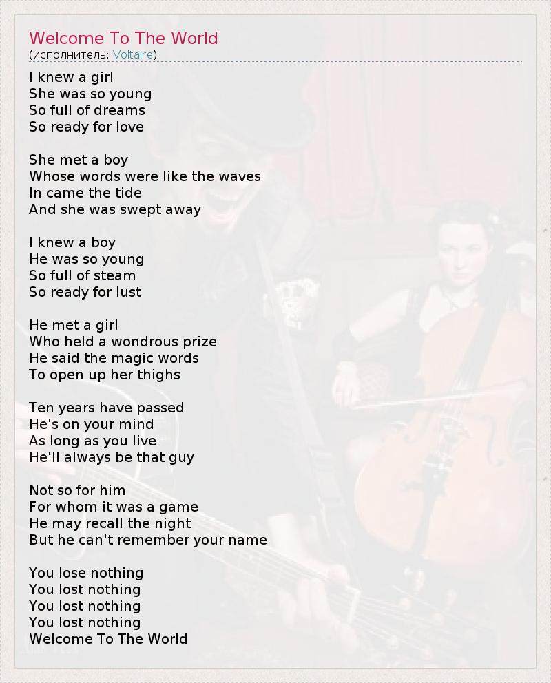А как ты думаешь, о чем песня "Welcome To The World" ?