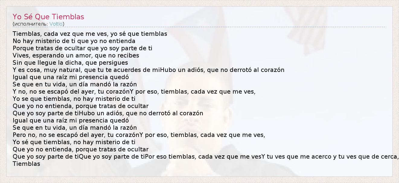 ГлавнаяИсполнителиVoltioYo Sé Que Tiemblas