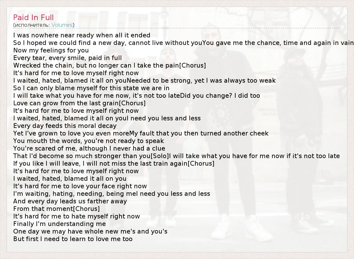 А как ты думаешь, о чем песня "Paid In Full" ?