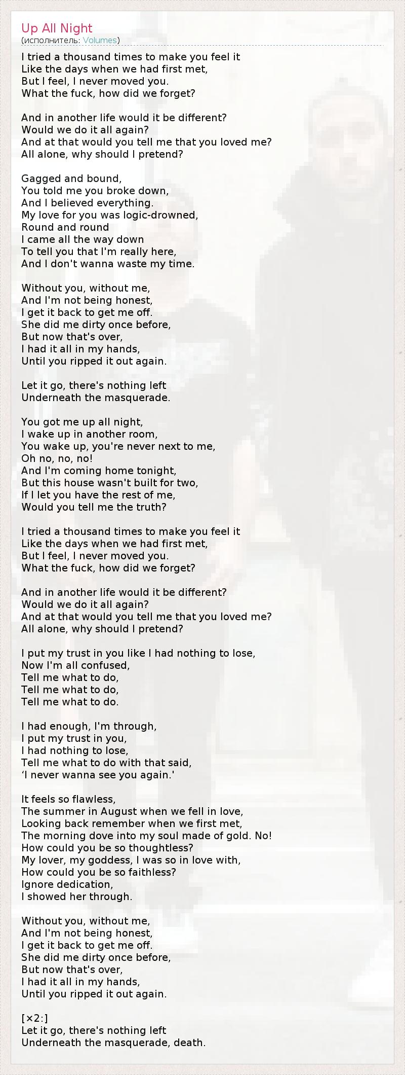 Это интересно:Художественное, техническое, брутальное, мелодичное, захватывающее… Все эти прилагательные лишь верхушка айсберга того звучания, которое предлагают нам эти ребята из южной Калифорнии.Volumes - группа из пяти талантливых и молодых музыкантов, которым удается неплохо смешивать широкий спектр стилей музыки. Данное сочетание пытается найти баланс между хаосом и спокойствием, дабы порадовать... продолжение