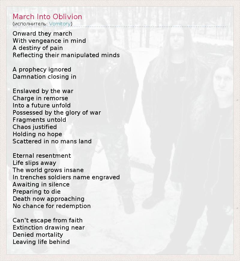 А как ты думаешь, о чем песня "March Into Oblivion" ?