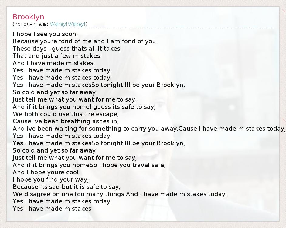 Yes I have made mistakesSo tonight Ill be your Brooklyn,